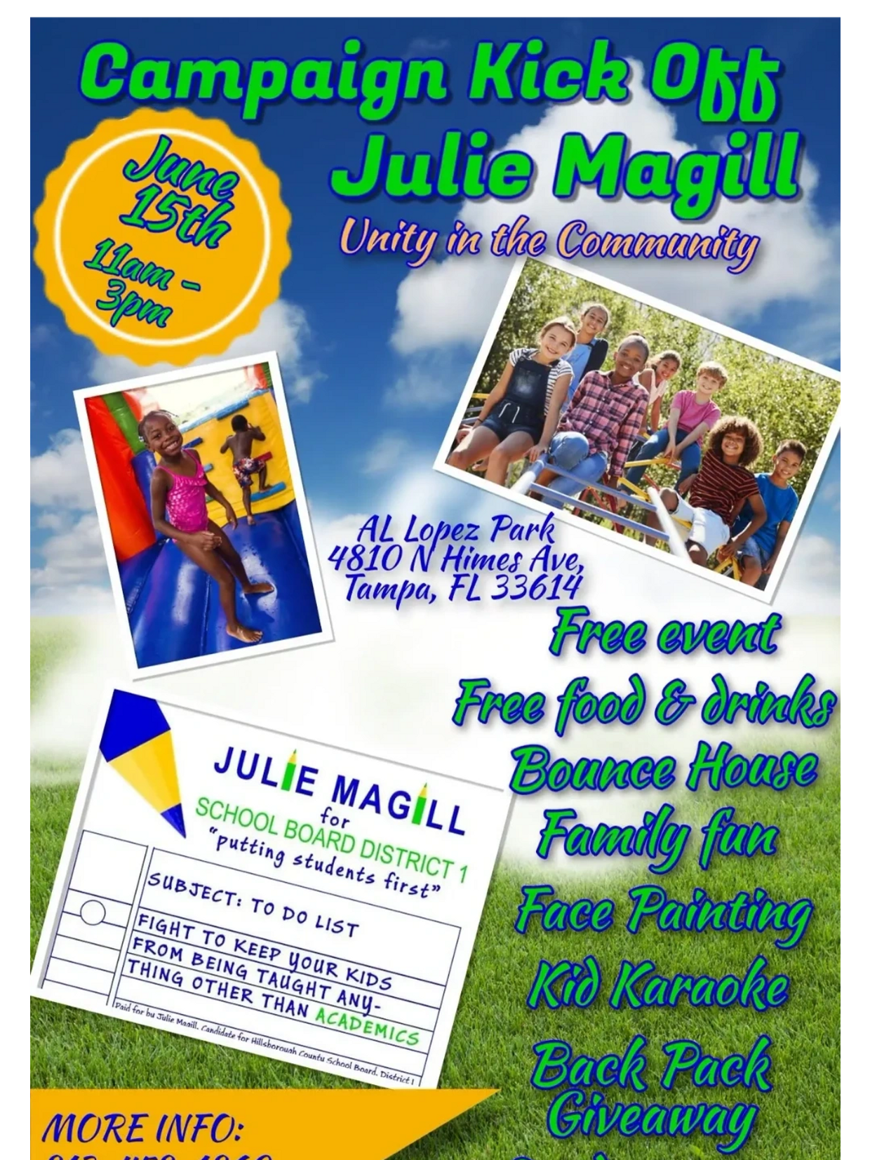 My beliefs are that kids need to be protected from sexually explicit material, that parents (all parents of any persuasion) should be notified of conversations their kids have with school officials, that political ideals should not be a part of the curriculum, unless it is in a history class and being taught as history, that teachers should be paid a better salary and merit increases, that the school board budget needs to be gone through and be transparent to all, that all kids should be afforded the same opportunities and not singled out by race or religion or handicap. This is about the kids, this is not about you or I or what we agree to disagree about. Tampa is an extremely diverse city and I don't believe if given the chance and without media interference, we can't all get along. We virtually all want the same thing, dont we? We want our families safe, our kids educated and treated with respect, and to live our lives as we see fit. It is nobody's business what you do in your own home, your own bedroom, or who you choose to worship. When we send our kids to school, they are bringing the values we have taught them. This is what makes them individuals and not robots. Kids will get along if given the chance and not influenced by hate, or jealousy. If you teach them empathy and love, these values will follow them to school.